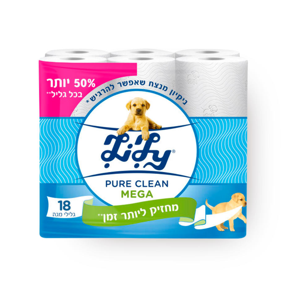 Pure Clean The soft and luxurious toilet paper was designed to give a clean feeling from the first use. 3D WAVE technology *gives the paper a unique three-dimensional texture for a winning cleanliness that you can feel Lasts longer 50% more in each roll"