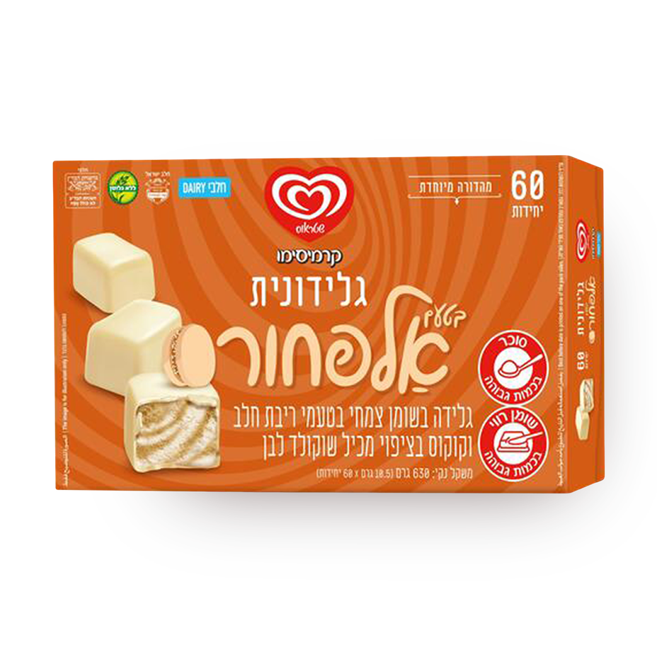 גלידונית בהשראת הקינוח אלפחורס, בטעמי ריבת חלב וקוקוס בציפוי המכיל שוקולד לבן קינוח גלידה אהוב שכיף לחלוק עם החברים והמשפחה בכל אירוע !