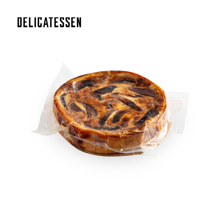 Crispy dough filled with onion, Gouda cheese, mozzarella and cream. The 18' diameter is suitable for 6 dishes alongside a salad