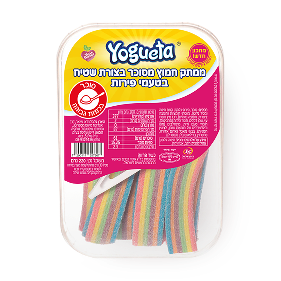 14.9 ₪Tagged ingredients: High Sugar, kosher9.8 ₪ / 100 g - Yogueta Sour stripes mixed flavor candies50 g