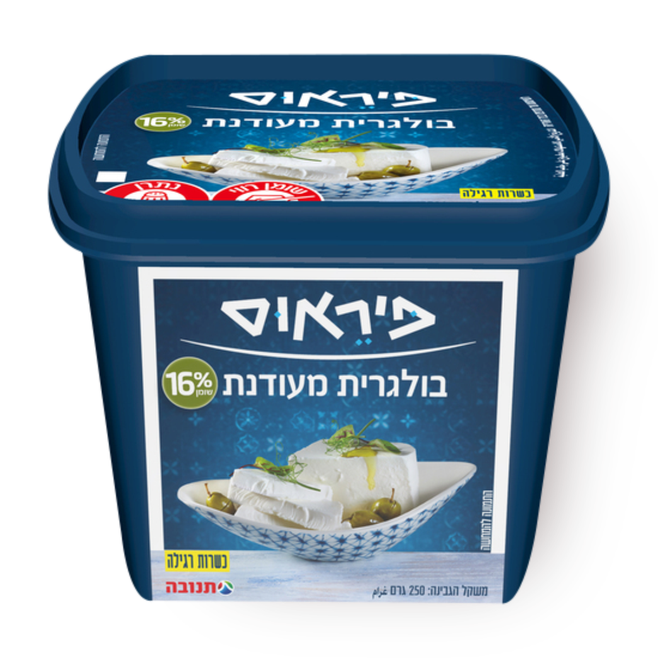 6.5 ₪Tagged ingredients: High Saturated Fat, kosher, Milk2.6 ₪ / 100 g - Piraeus Bulgarian cheese 16%250 g
