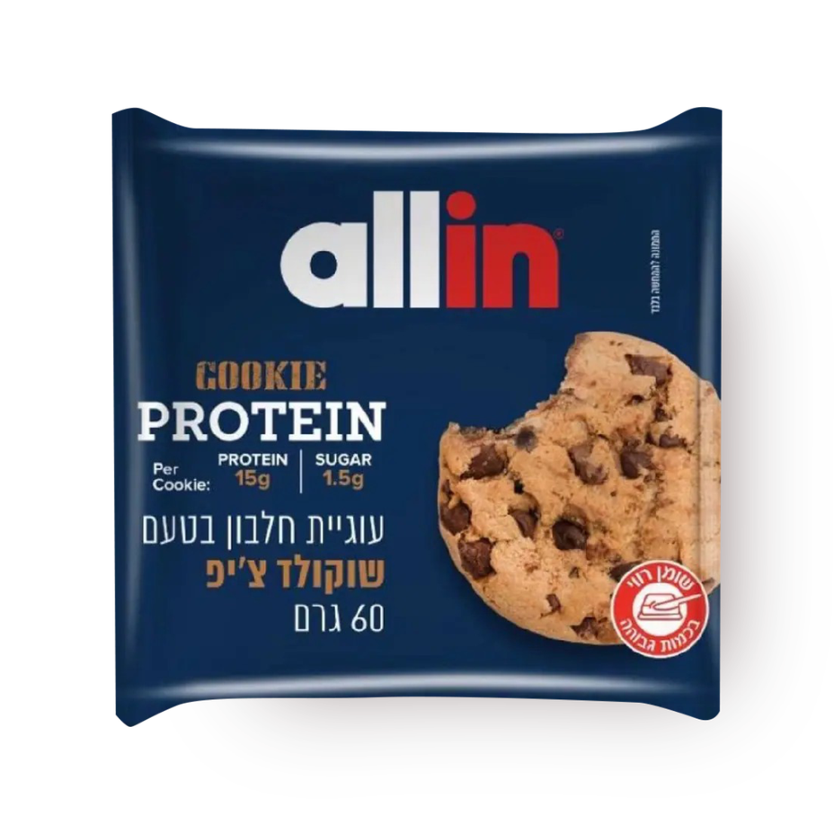 16.9 ₪Tagged ingredients: gluten, kosher28.17 ₪ / 100 g - allin Protein Bar Cookie cream Flavor60 g