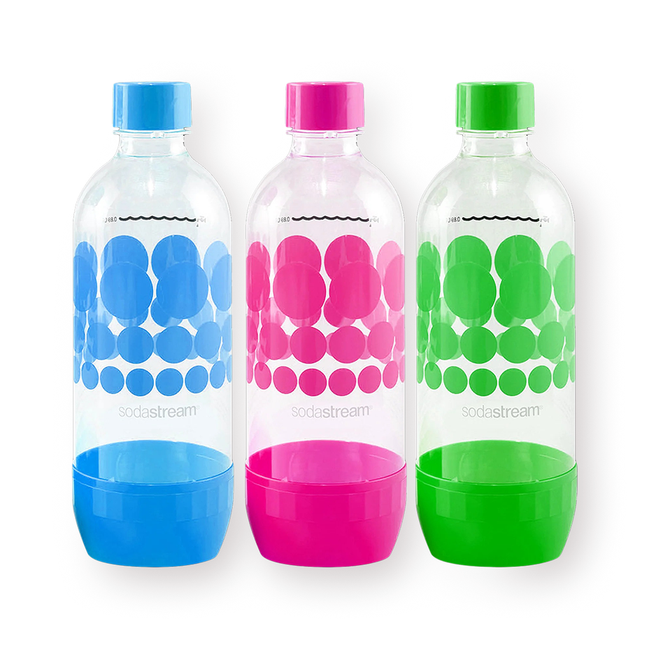 Trio of bottles in dot design (1 liter) The gauze bottles are the perfect size to share with friends or keep in the fridge for drinking, whenever you want. The bottles are sold in a case of three, so that you can have it as lively and refreshing as possible. In addition, each bottle saves the use of thousands of disposable plastic bottles. The bottles are suitable for use in all Sodastream devices, except for the Crystal/Penguin device