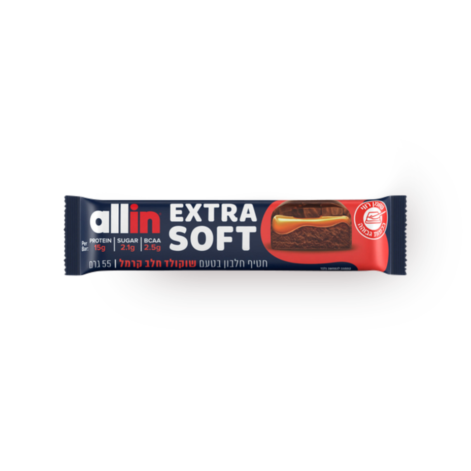 16.9 ₪Tagged ingredients: gluten, High Saturated Fat, kosher, Milk30.73 ₪ / 100 g - allin Extra Soft Protein Bar White Chocolate Peanuts Caramel Flavor55 g