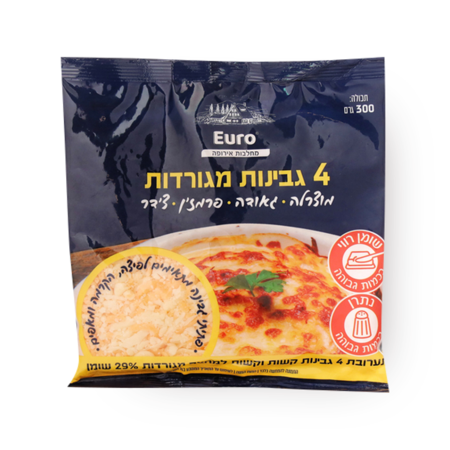 גבינות מגורדות: מוצרלה, גאודה, פרמז׳ן, צ׳דר