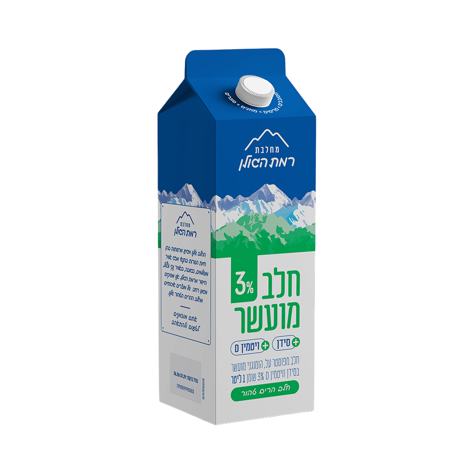 11.9 ₪Tagged ingredients: High Saturated Fat, kosher5.95 ₪ / 100 g - Fresh milk from the Golan 3%- Controlled price1 L