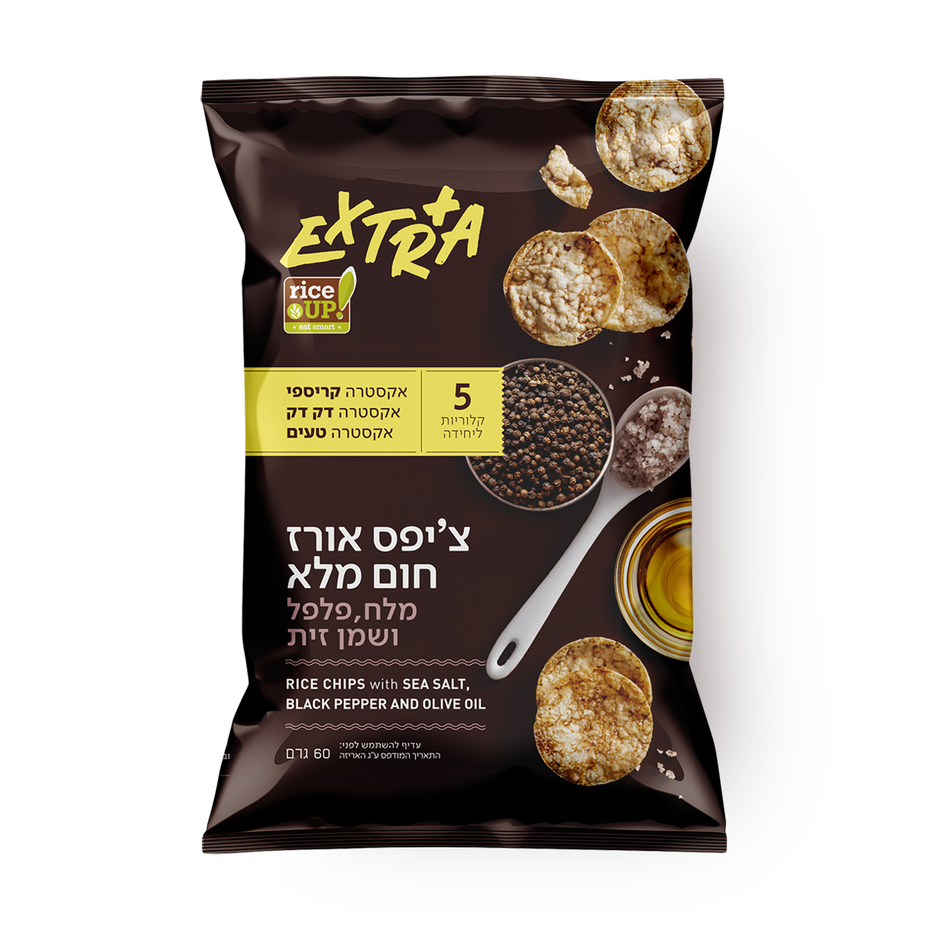 Extra brown full rice chips filled with salt, pepper and olive oil