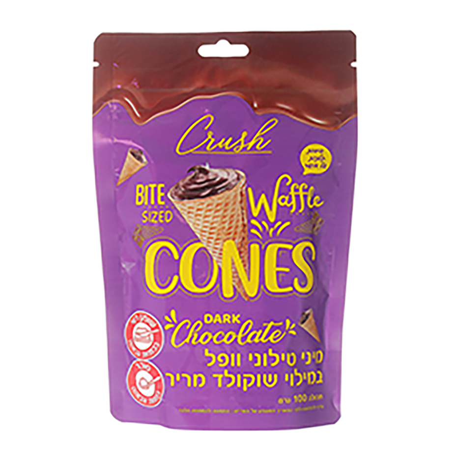 Dark chocolate 75% (sugar, cocoa mass, cocoa butter, emulsifiers: E322, E476, total cocoa solids in chocolate 40% minimum) Tilon waffle 25% (water, wheat flour (contains gluten), sugar, emulsifier: E322, palm oil, Food coloring: E150D, salt, vanilla flavoring