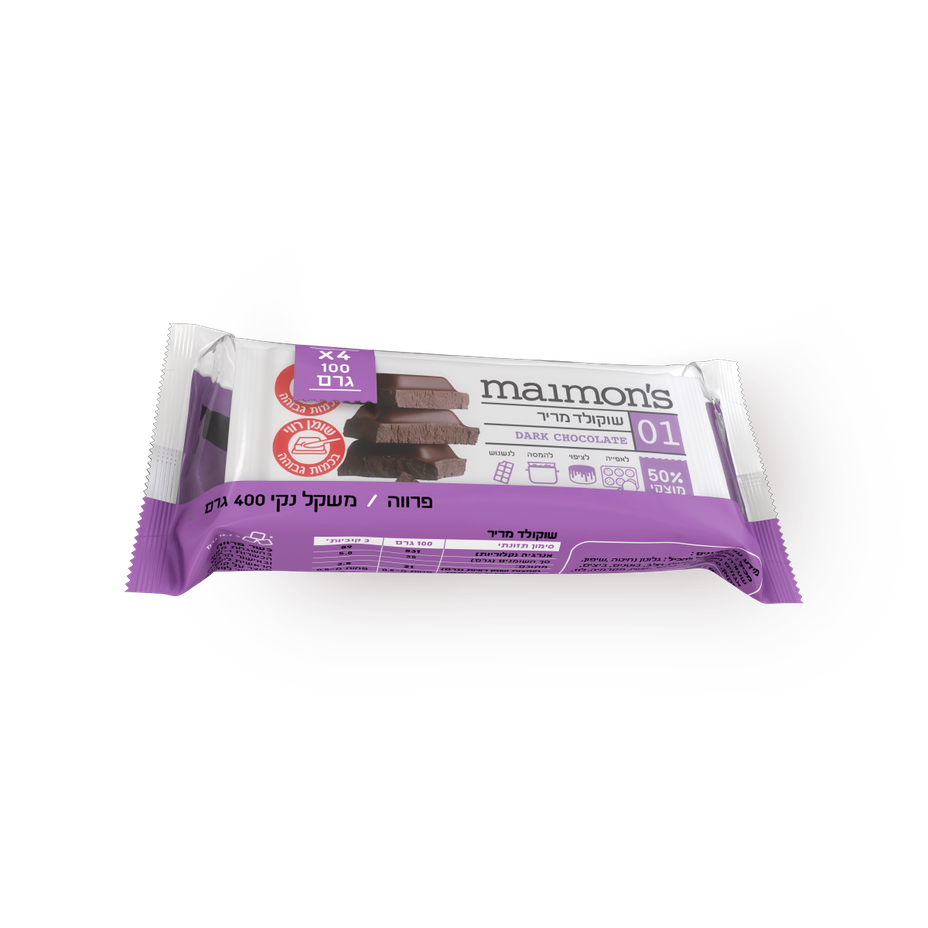 11.9 ₪Tagged ingredients: High Saturated Fat, High Sugar, kosher11.9 ₪ / 100 g - Carmit Dark Chocolate 50% Pack3 × 100 g