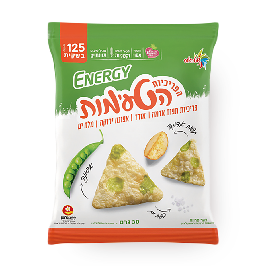 6.9 ₪Tagged ingredients: kosher23 ₪ / 100 g - Energy Hummus, rice, black lentils, and quinoa crisps with black pepper30 g