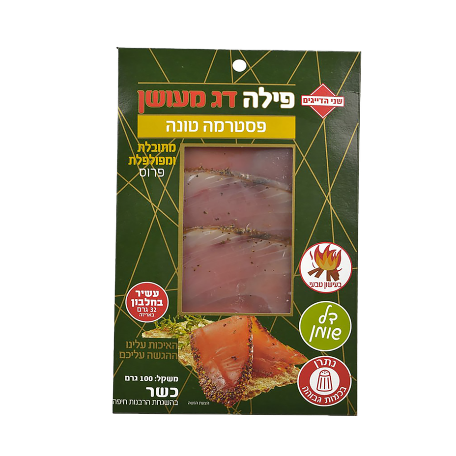 24.9 ₪ instead of standard 27.9 ₪Tagged ingredients: High Sodium, High Sugar, kosher5.53 ₪ / 100 g - Cold Smoked salmon sliced100 g