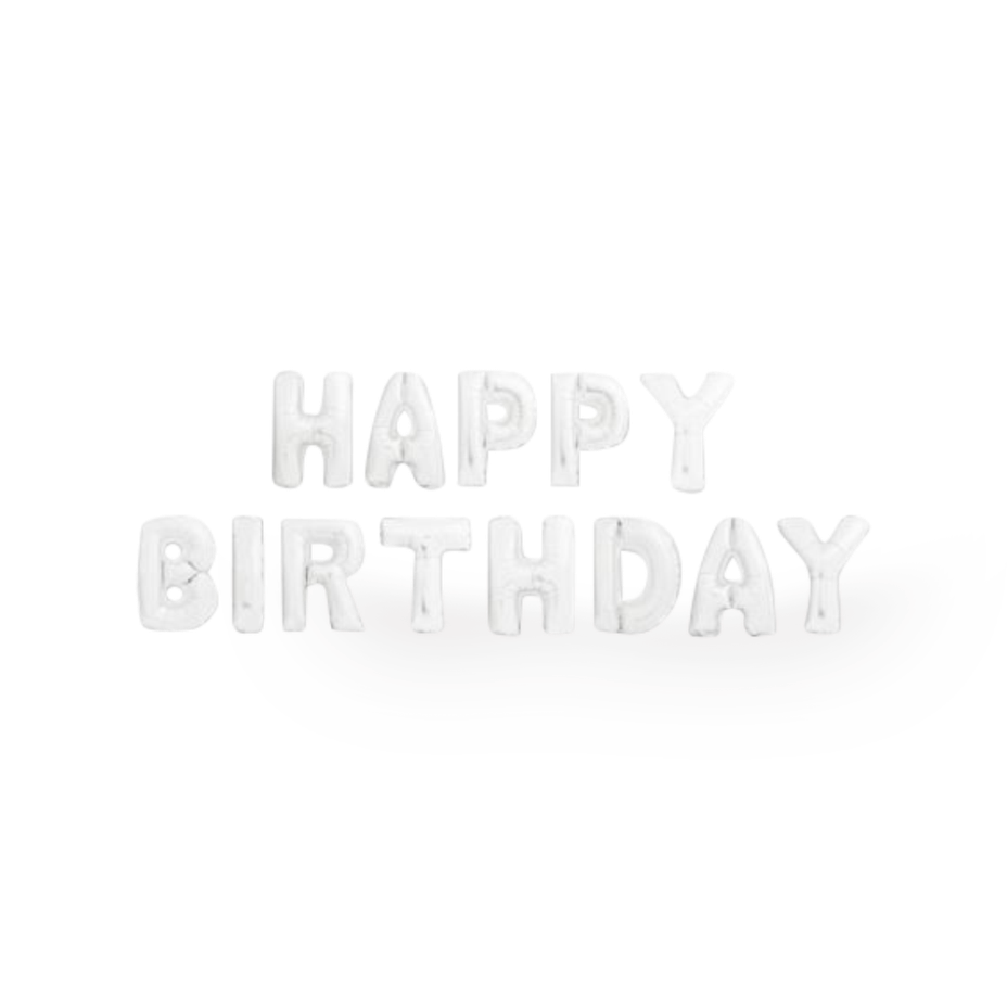 A set of self-inflating balloons -HAPPY BIRTHDAY- white