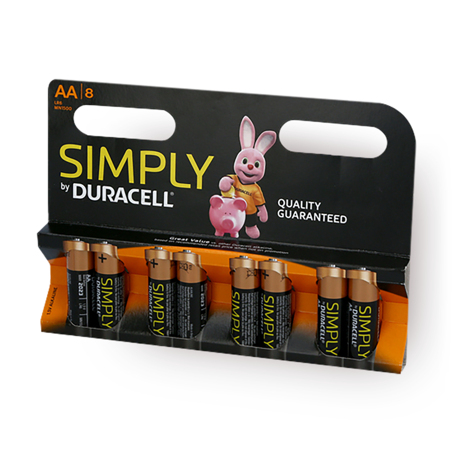 Eight Duracell Simply AA batteries