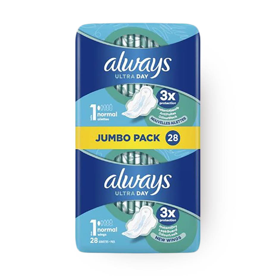 תחבושות אולוויז אולטרה נורמל 28 יחידות חלק קדמי גדול יותר ב-9% וחלק אחורי גדול יותר ב-85% (בהשוואה לאולוויז אולטרה נורמל) בשילוב עם טכנולוגיית LeakGuard שלנו מבטיחים הגנה מכל הכיוונים למניעת דליפות במהלך לילות הווסת.