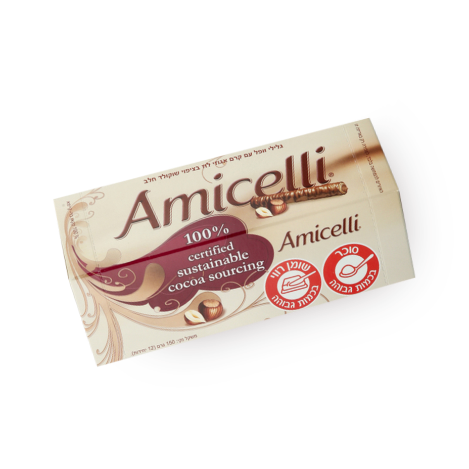 אמיצ'לי- גלילי וופל עם קרם אגוזי לוז בציפוי שוקולד חלב