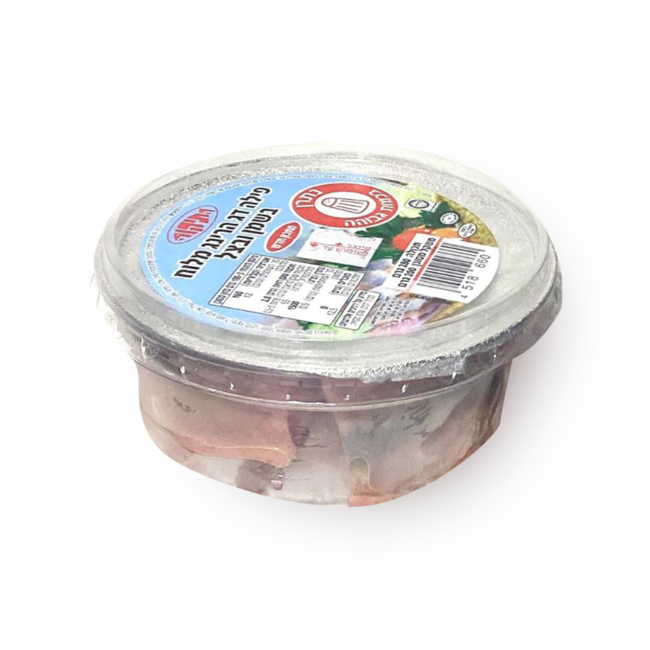 Herring fish fillet (95.5% of the filtered weight), vegetable oil - soy (33%), salt (38% of the fish) Onion 2%, food coloring, beetroot extract, preservative sodium benzoate