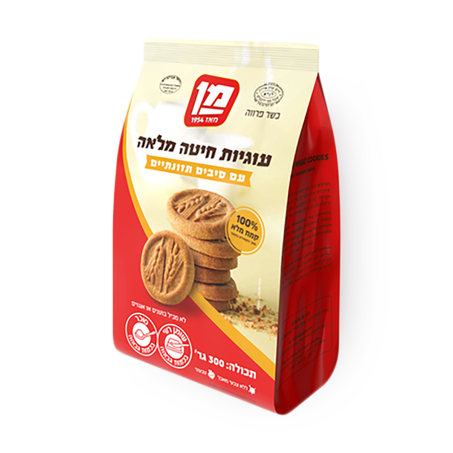 Man, whole wheat cookies with dietary fiber 300 grams 100% whole wheat of the total flour in the product.