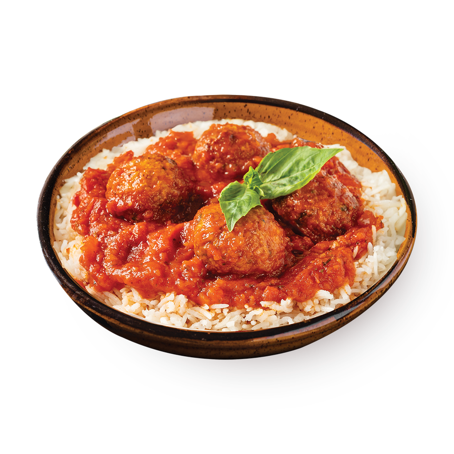 Water, chicken meatballs 26% (chicken breast 13%, onion, breadcrumbs [wheat flour (contains gluten), vegetable oils, yeast, salt, ascorbic acid], potato, soybean oil, eggs, parsley, salt, spices, garlic ), water, crushed tomatoes 18%, basmati rice 14%, concentrated tomato sauce 7%, onion, canola oil, salt, garlic, sugar, herbs (basil, oregano, thyme), spices, stabilizer (xanthan gum).
