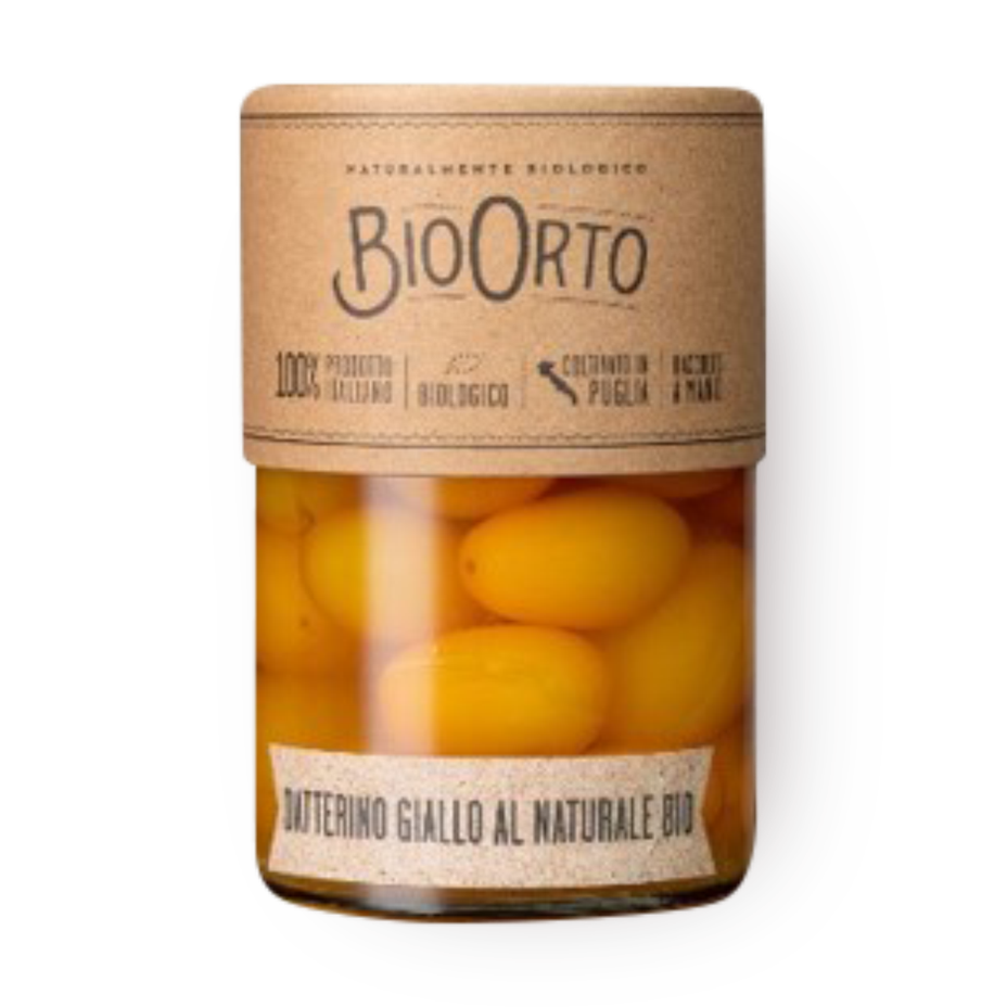 Yellow cherry tomatoes (65%), water, table salt. *Detrini variety.