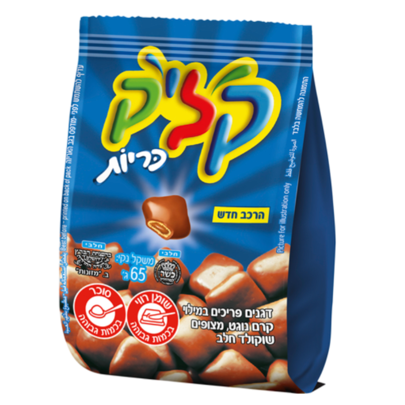 11.9 ₪Tagged ingredients: gluten, High Saturated Fat, High Sugar, kosher18.31 ₪ / 100 g - Click Cookie65 g