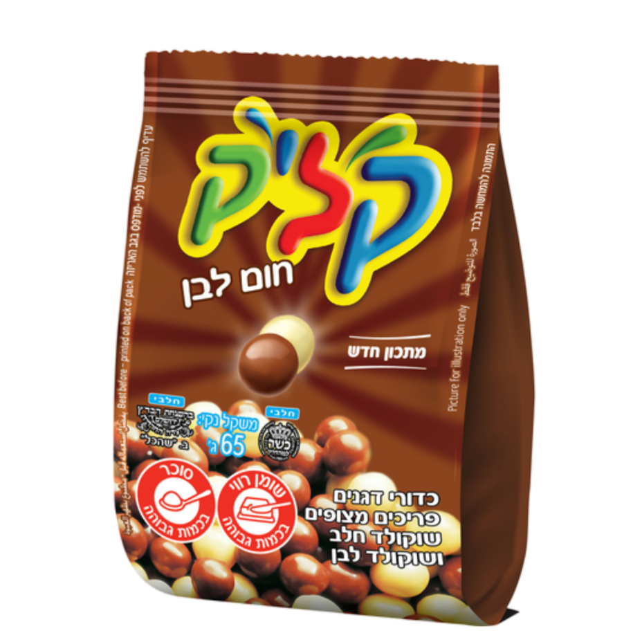 11.9 ₪Tagged ingredients: gluten, High Saturated Fat, High Sugar, kosher18.31 ₪ / 100 g - Click Chocolate balls65 g