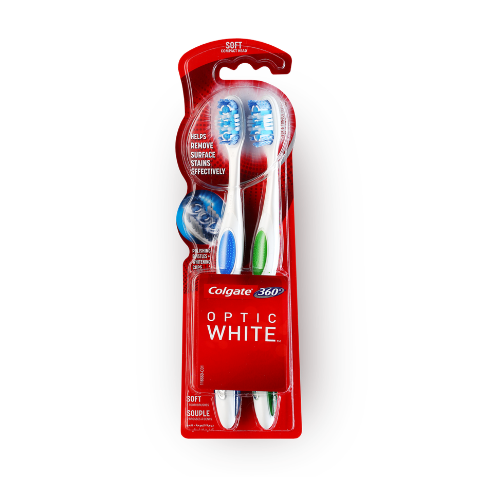 A pair of Colgate 360 Optical White toothbrushes for a radiant smile and cleansing the entire oral cavity with soft fibers 2 pcs