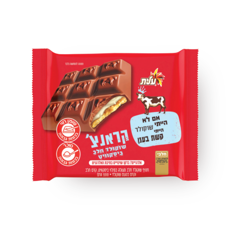 6.9 ₪Tagged ingredients: gluten, High Saturated Fat, High Sugar, kosher15.33 ₪ / 100 g - Click Milk chocolate with cornflakes and crackles85 g