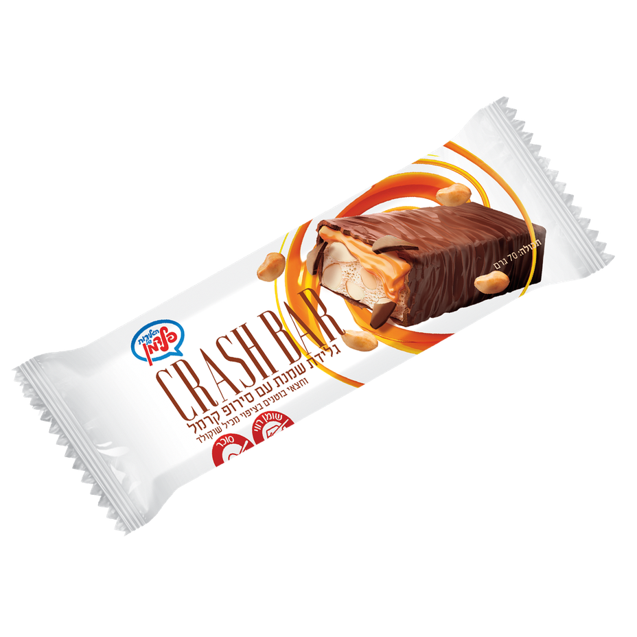 Cream ice cream with added milk jam syrup (5%), roasted peanut halves (10%) coated with milk chocolate (15%).