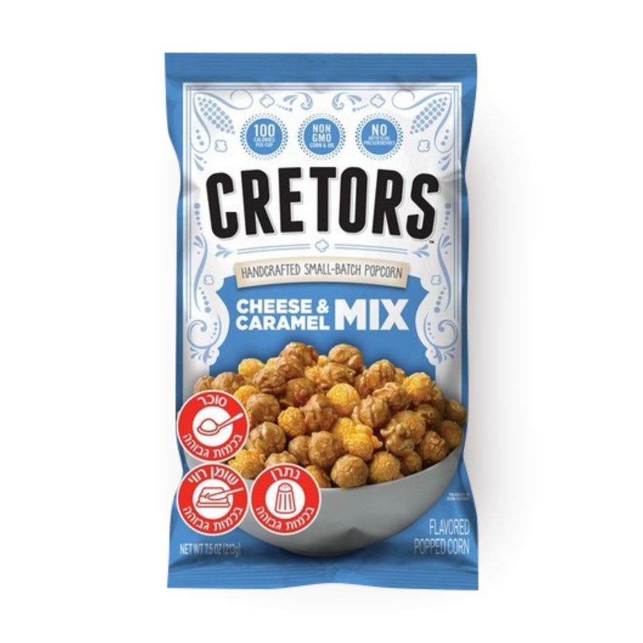 Popcorn with caramel: brown sugar, cane sugar, corn kernels, butter, brown rice syrup, sunflower oil, sea salt, emulsifier (soy lecithin), puff (baking soda). Cheese popcorn: corn kernels, sunflower oil, cheddar cheese, salt, cream, thickening (sodium phosphate), edible color, acidity regulator (lactic acid)