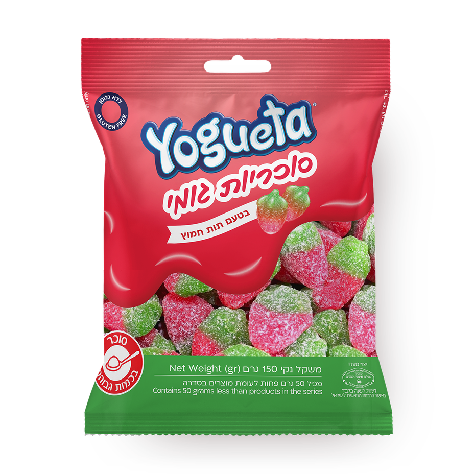 10 ₪ instead of standard 13.9 ₪Tagged ingredients: gluten, kosher10 ₪ / 100 g - Yogueta Sour stripes strawberry flavor candies50 g