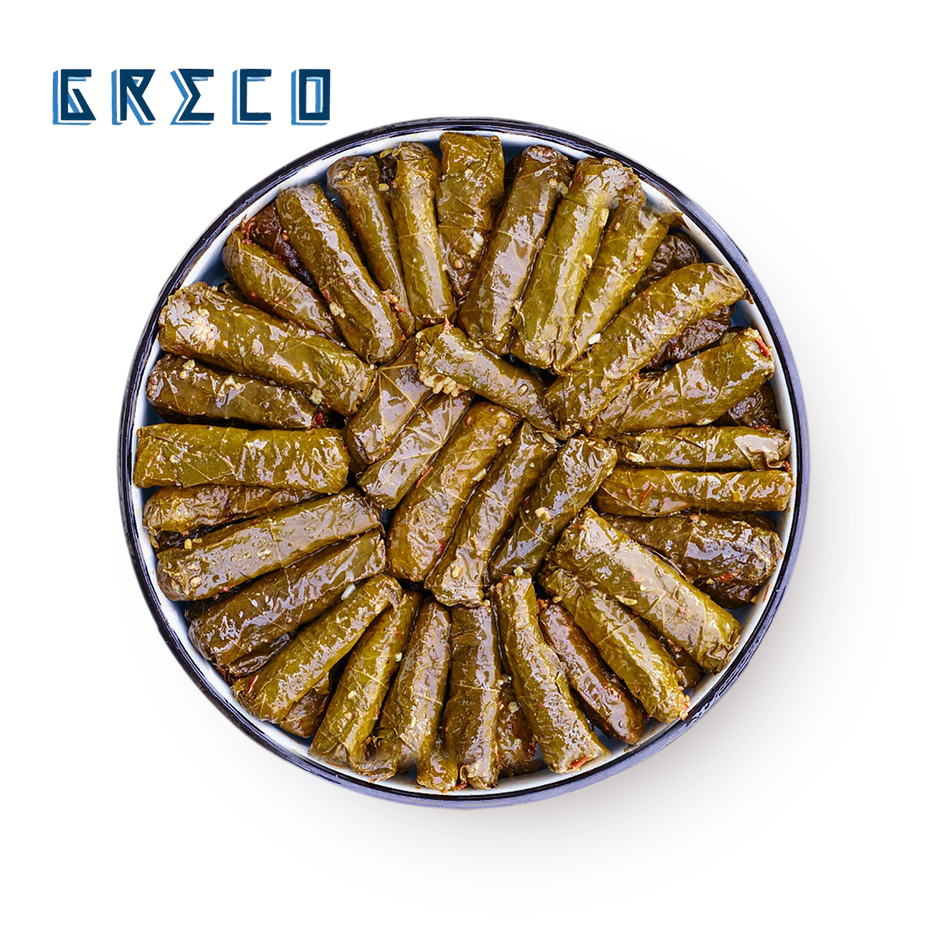 Cooked rice (60%), water, vine leaves (10%), onion, soybean oil, salt, dill, mint, black plum, edible acid: citric acid