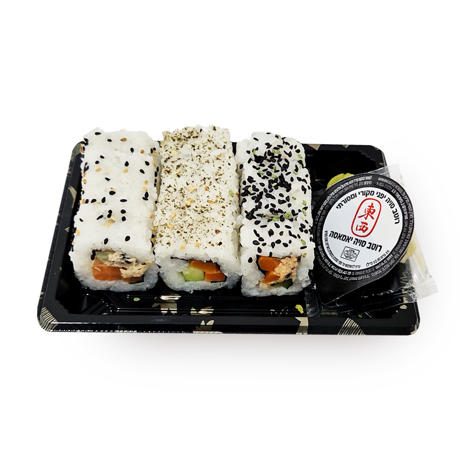 Rice, water, baked fish, vegetables, natural vinegar, eggs, sugar, trehalose, hot chili sauce, salt, sesame oil, chili oil, sesame, seaweed, beta carotene, humectant: sorbitol, preservative: sorbet , benzoate. spices. Allergens: fish, sesame oil, soy, sesame, horseradish, eggs, ginger.
