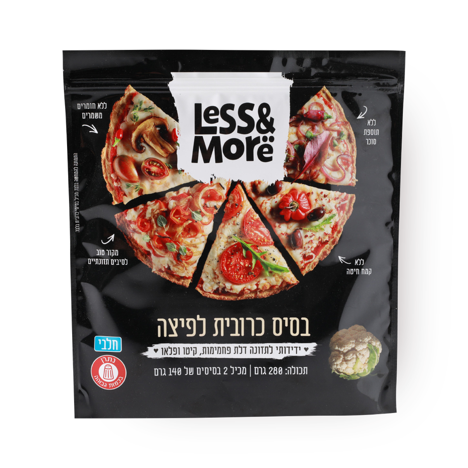 כרובית (75%), גבינת מוצרלה 24% שומן (חלב בקר מפוסטר, מלח), שקדים טחונים, קליפות פסיליום, מלח.