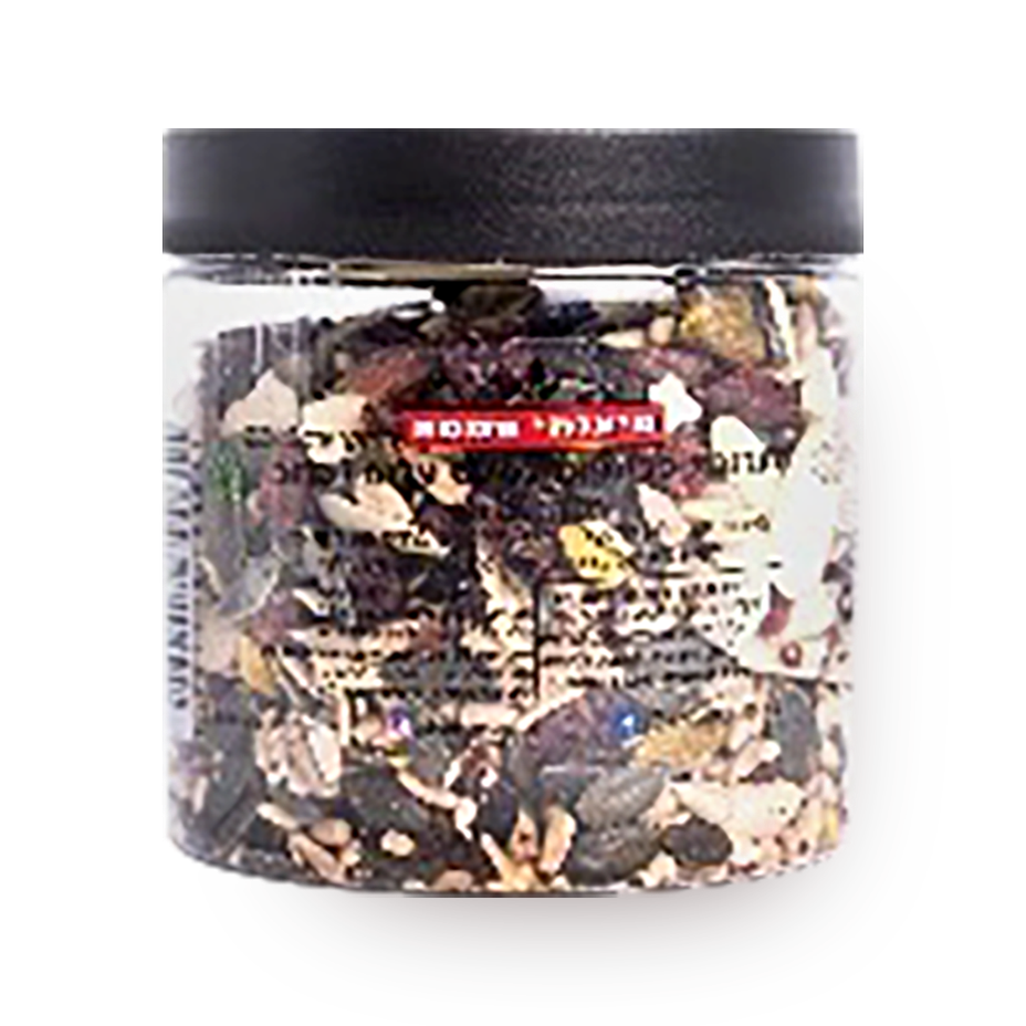 Sliced blanched almonds, peeled pumpkin seeds, peeled sunflower seeds, cranberries without added sugar, Chinese pecans, extracted milky pistachios.