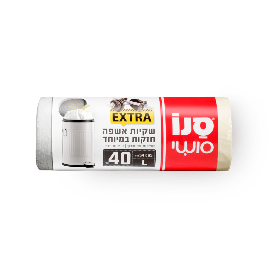 40 שקיות אשפה חזקות במיוחד בטכנולוגיית OXO נשלפות עם שרוך מערכת ניהול האיכות של סנו אושרה כמתאימה לדרישת תקן 2008: ISO 9001