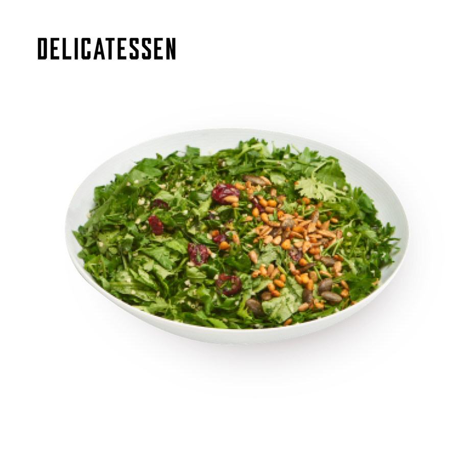 Bulgogi (30%) (gluten), parsley, cranberries (13%), olive oil, rocket, coriander, lemon juice, mint, pumpkin seeds, sunflower seeds, pine nuts, table salt, ground shata pepper (chili), sesame , walnuts, coriander seeds, cumin seeds, water.