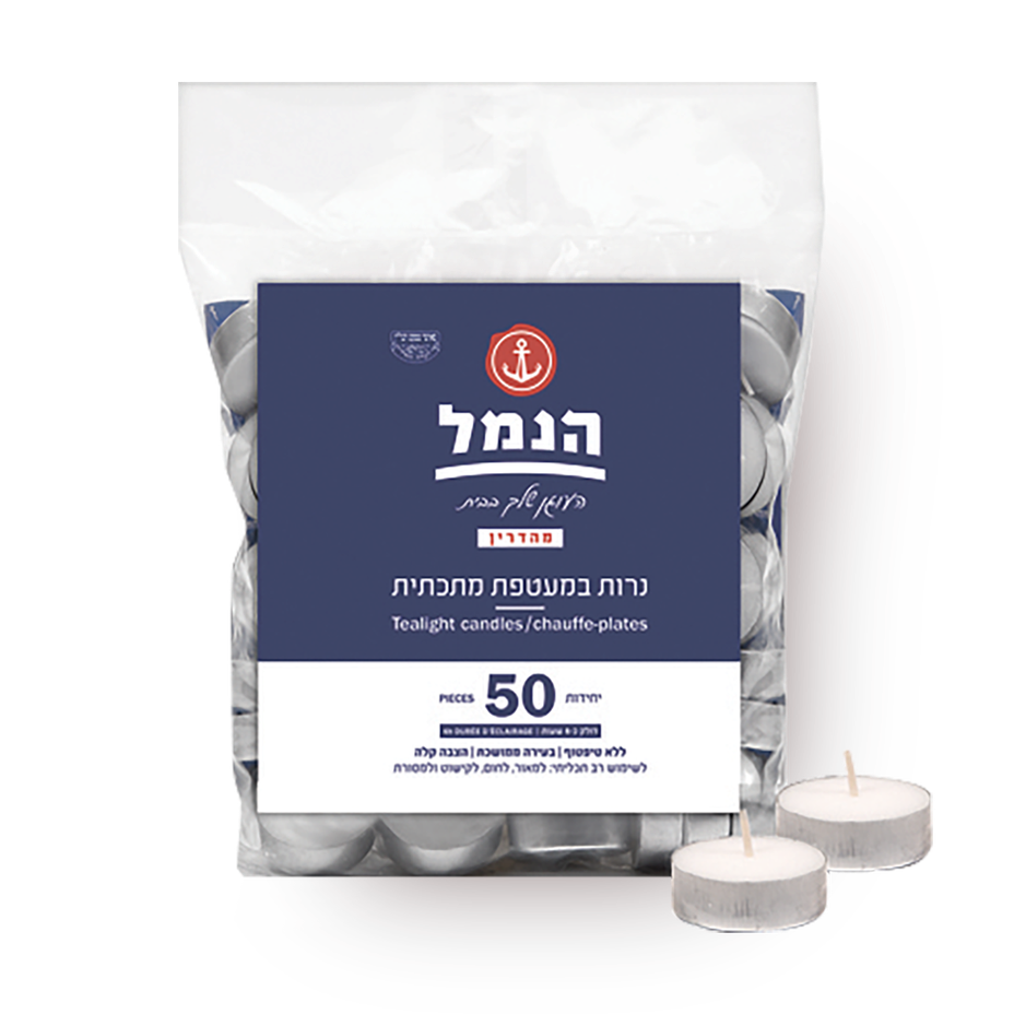 נרות במעטפת מתכתית, ללא טיפטוף, בעירה ממושכת, הצבה קלה 50 יח`