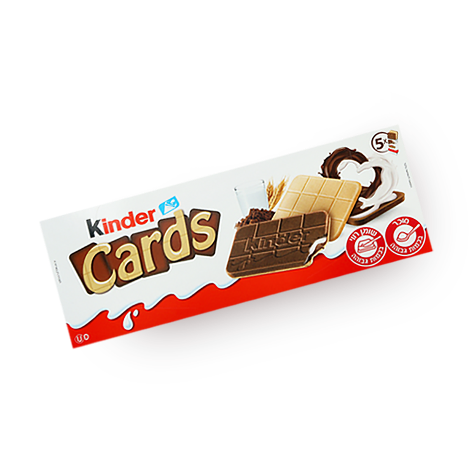 קינדר קארדס, וופל ייחודי במילוי קרם חלבי (41.5%) וקרם קקאו (38%)
