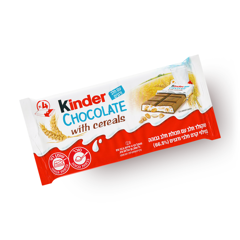 16.9 ₪ instead of standard 18.9 ₪Tagged ingredients: High Saturated Fat, High Sugar, kosher8.45 ₪ / 100 g - Kinder Chocolate100 g