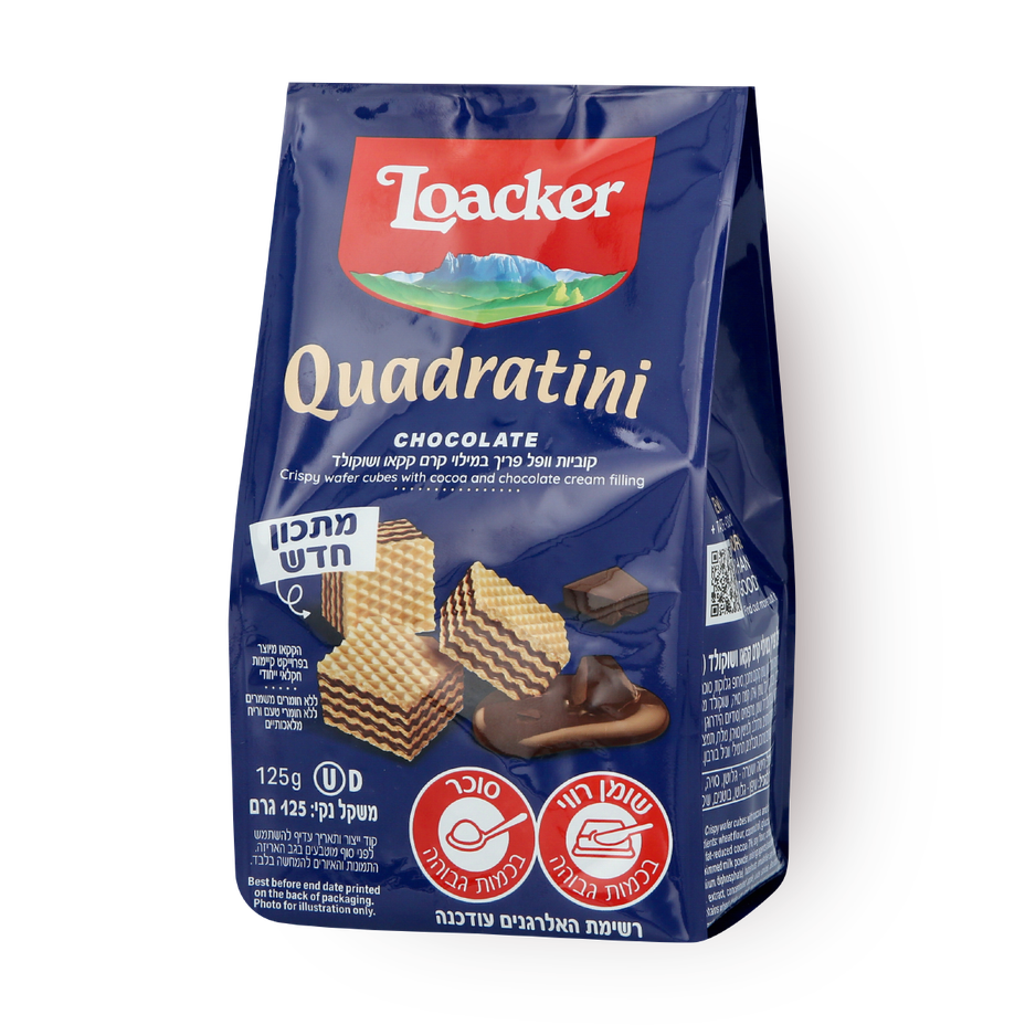11.9 ₪Tagged ingredients: gluten, High Saturated Fat, High Sugar, kosher9.52 ₪ / 100 g - Loacker Quadratini Chocolate milk wafers125 g