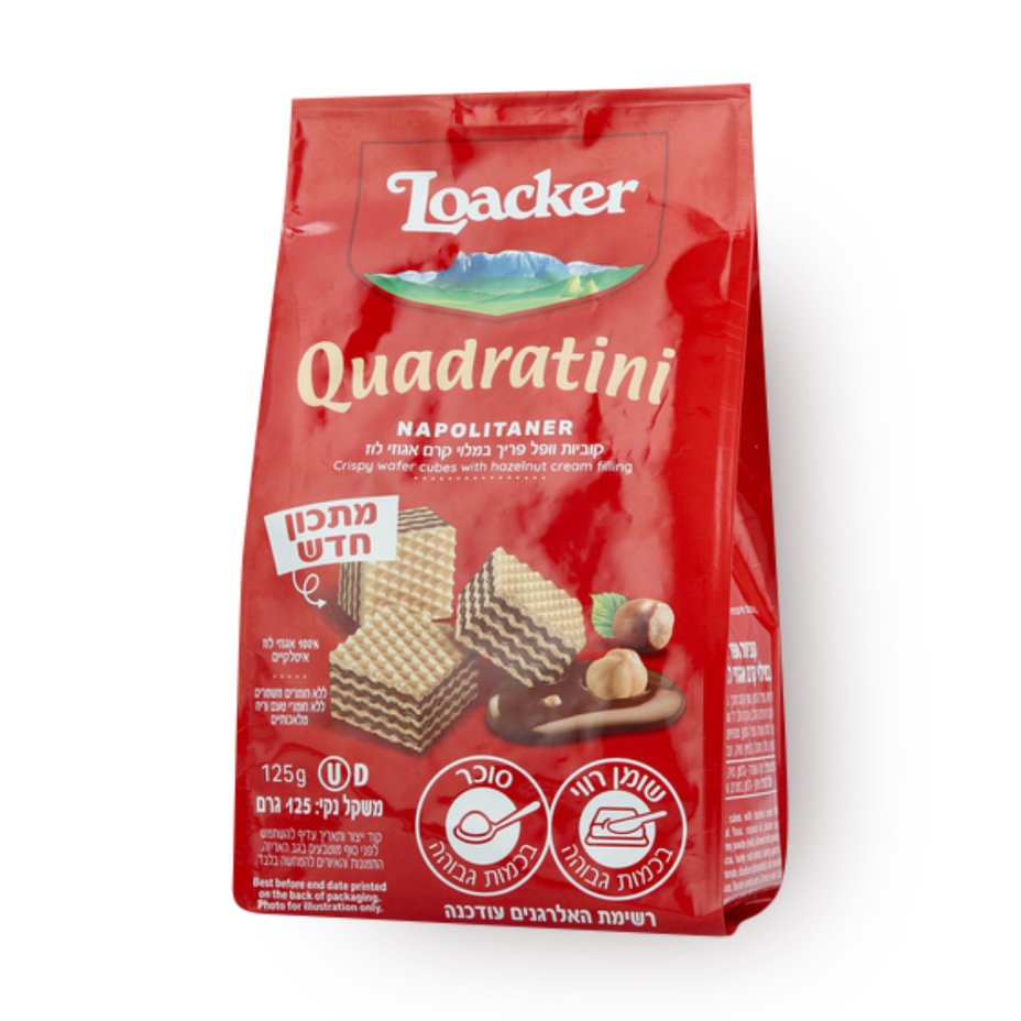 11.9 ₪Tagged ingredients: gluten, High Saturated Fat, High Sugar, kosher9.52 ₪ / 100 g - Loacker Quadratini Chocolate milk wafers125 g