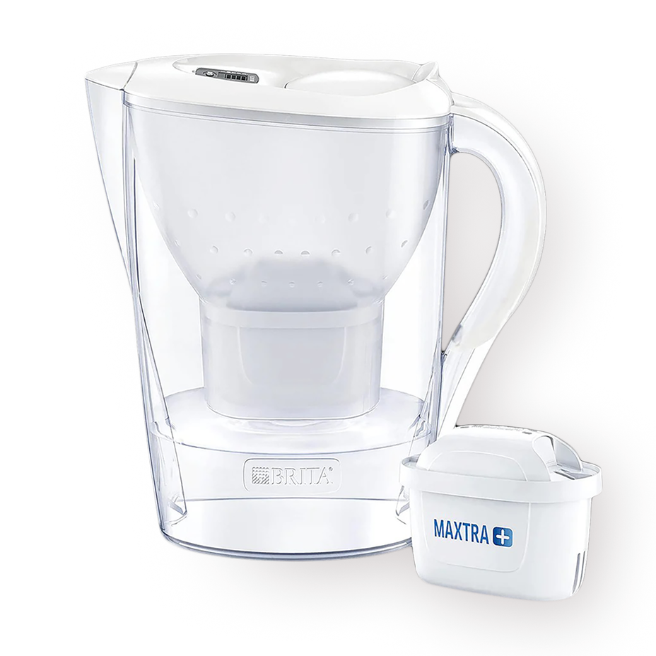 Brita jug for filtering water from the Marla model in white color + 1 Maxtra + type filter BRITA, the world's leading company for home solutions for water filtration, a perfect solution for tastier and scale-free water. Marella water filter jug that includes: * A digital meter that remembers when the filter should be replaced, taking into account the number of weeks that have passed. * The pitcher was specially designed to fit the refrigerator door. * Suitable for washing in the dishwasher (without the lid). * Does not contain bisphenol A * The volume of the pitcher is 2.4 liters (1.4 liters of filtered water). * The jug comes with 1 Maxtra + model filter.