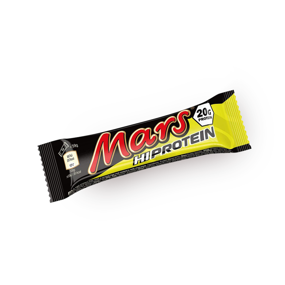 Mars milk chocolate snack rich in protein with caramel layers and milk chocolate coating