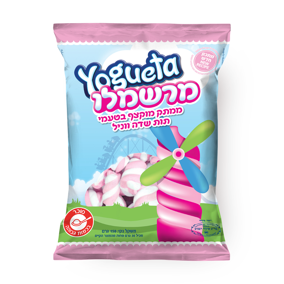 Marshmallow Yogueta - a rolled foam candy with strawberry and vanilla flavors