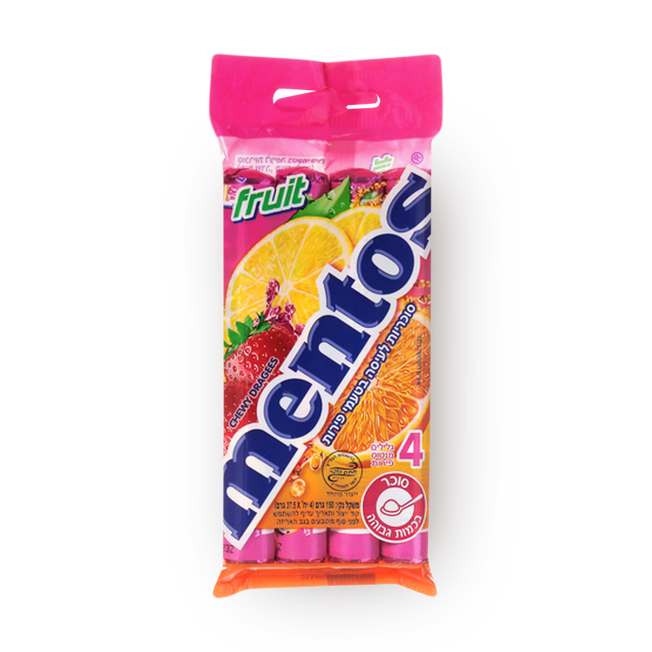 13.9 ₪Tagged ingredients: gluten, High Sugar, kosher7.02 ₪ / 100 g - Mentos strawberry candies pack4 × 37.5 g
