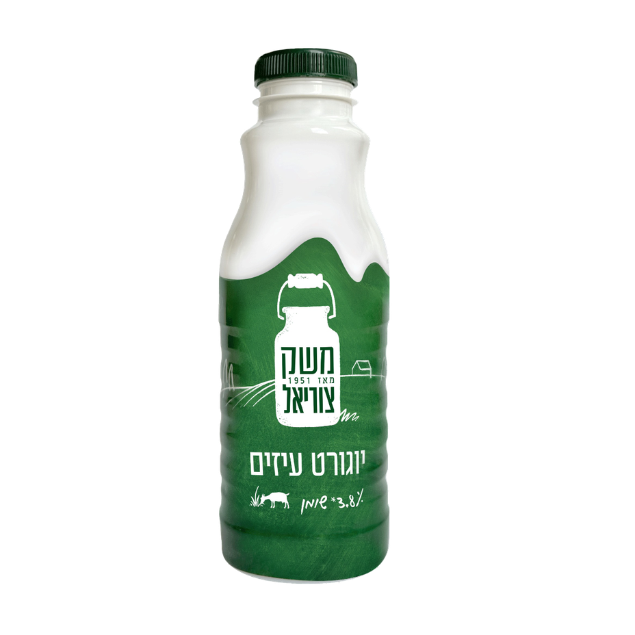 "Meshek Tsuriel Drinkable goat yogurt • Whole goat's milk yogurt • About 3.8% fat • Suitable for drinking on its own or for making smoothies, muesli and as a base for sauces"