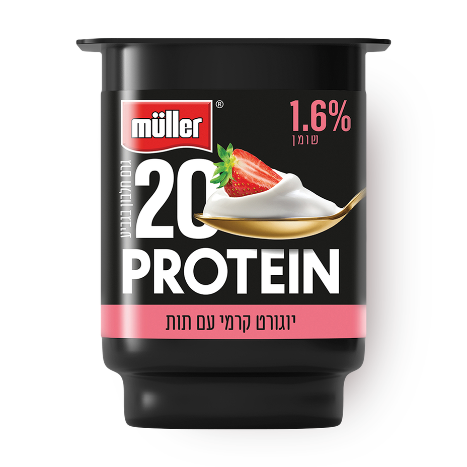 Müller Active protein-enriched yogurt with strawberry 20 grams of protein in a cup