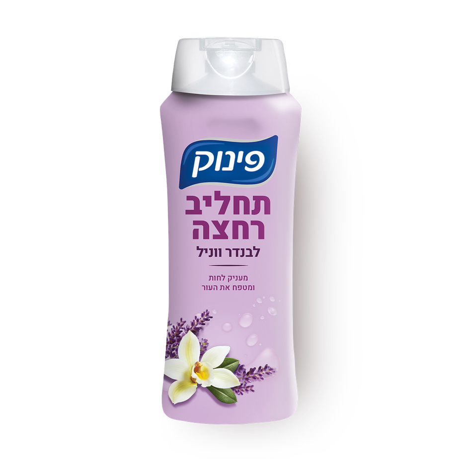 פינוק תחליב רחצה לבנדר ווניל מועשר בתמצית לבנדר ווניל בתוספת ויטמי אי לטיפח העור