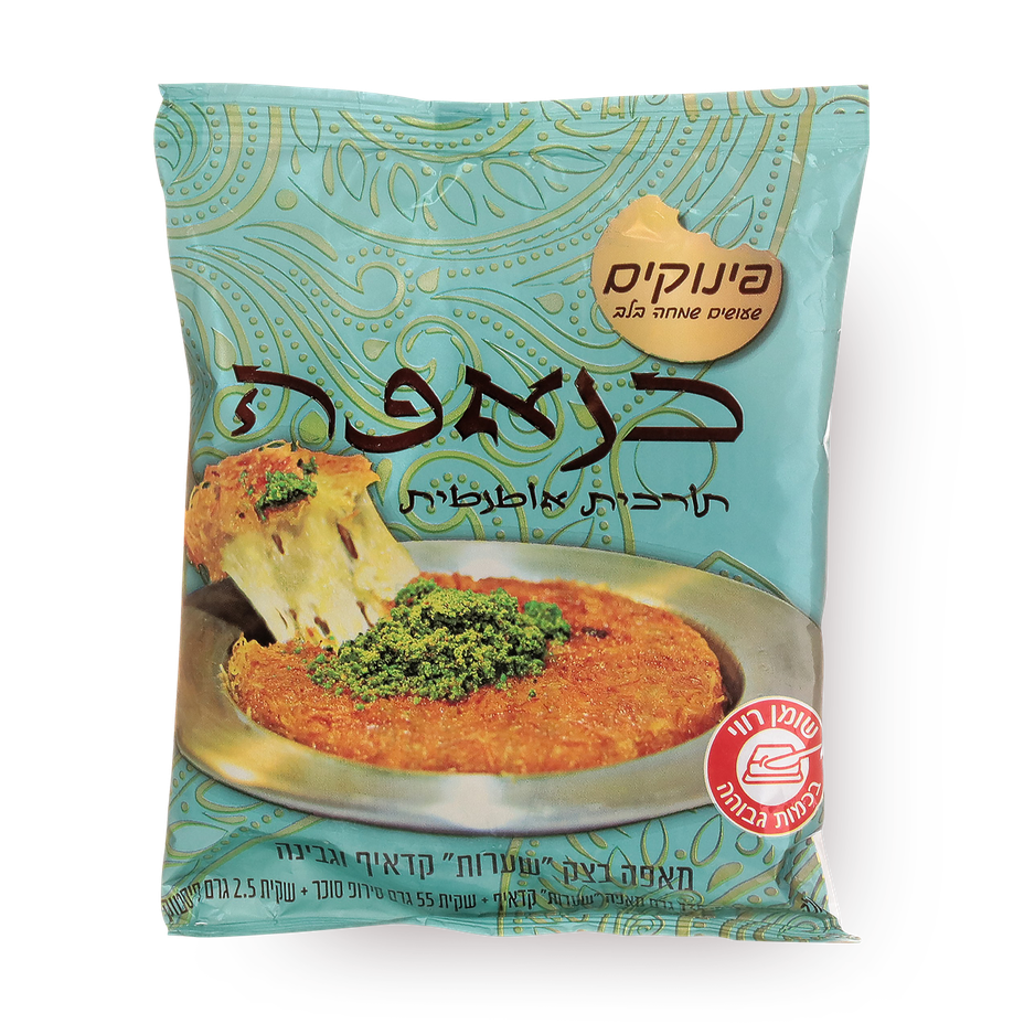 thin noodle kadaif, Israel milk cheese, pasteurized milk, coagulant, salt, butter, hardened vegetable oil, molasses, sugar syrup, sugar water, crushed pistachios