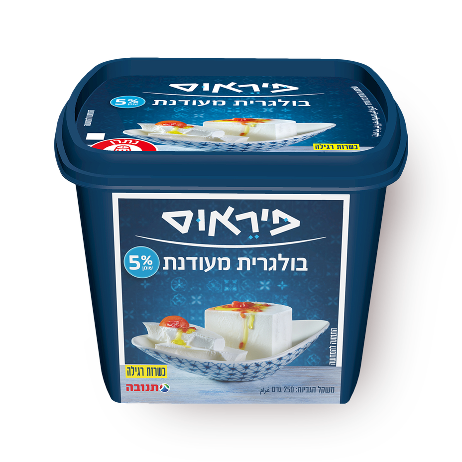 11.62 ₪Tagged ingredients: kosher2.32 ₪ / 100 g - Piraeus Bulgarian cheese 5%250 g